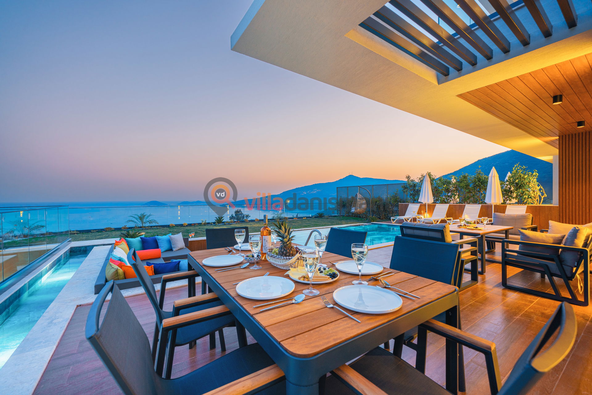 Antalya' nın eşsiz tatil beldelerinden birisi olan Kalkan' ın  Kalamar  mevkiinde bulanan villamız deniz manzaralı lüks villamızdır .