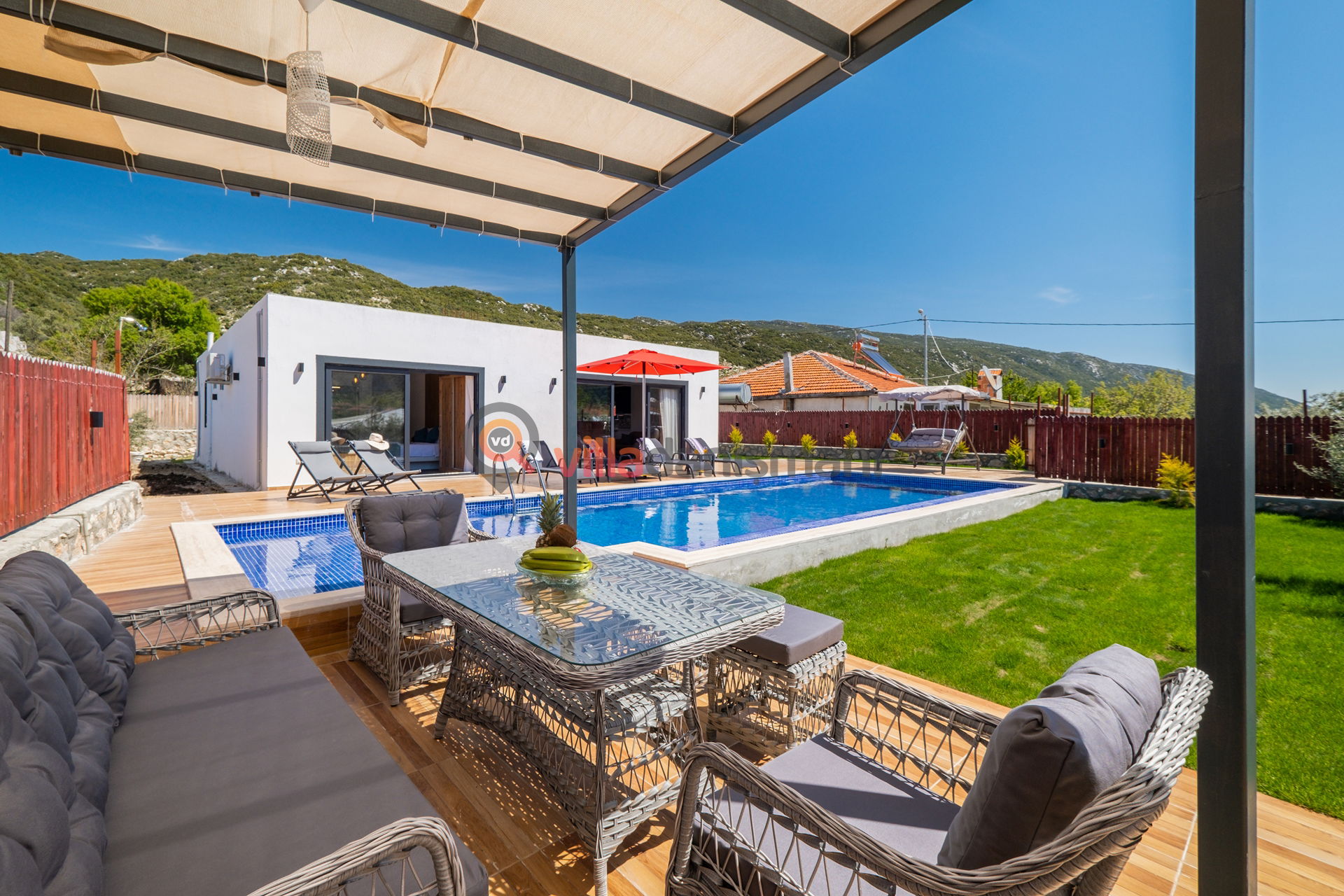 Antalya'nın eşsiz tatil beldelerinden birisi olan Kalkan'ın Sarıbelen mevkiinde bulunan villamız, toplamda 6 kişi kapasiteli olup doğa içerisinde, bahçeli ve muhafazakar özelliklerine sahip lüks konsepte hazırlanan villalarımızdandır.