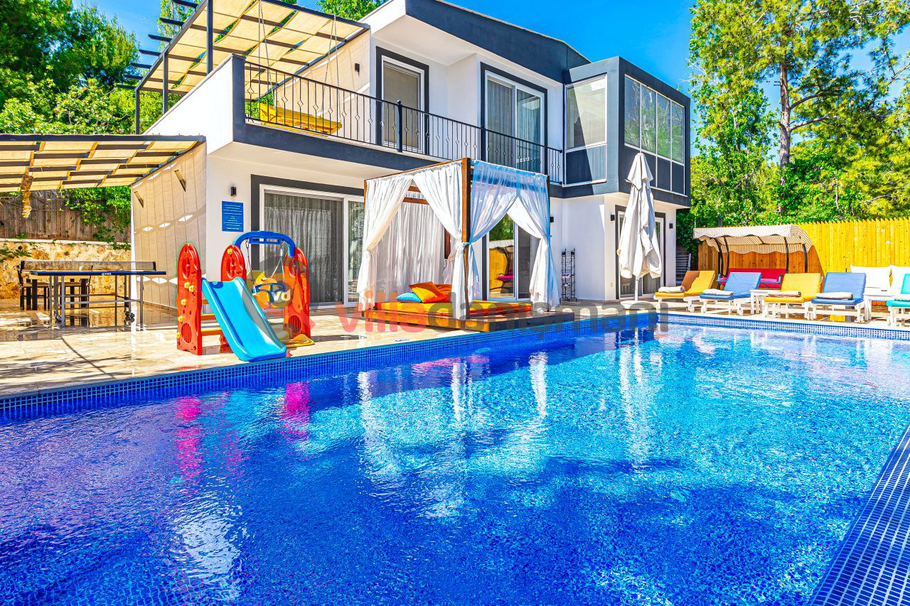 Antalya'nın eşsiz tatil beldelerinden birisi olan Kalkan'ın İslamlar mevkiinde bulunan 6 kişi kapasiteli, doğa ile iç içe, muhafazakar villalarımızdan biridir.