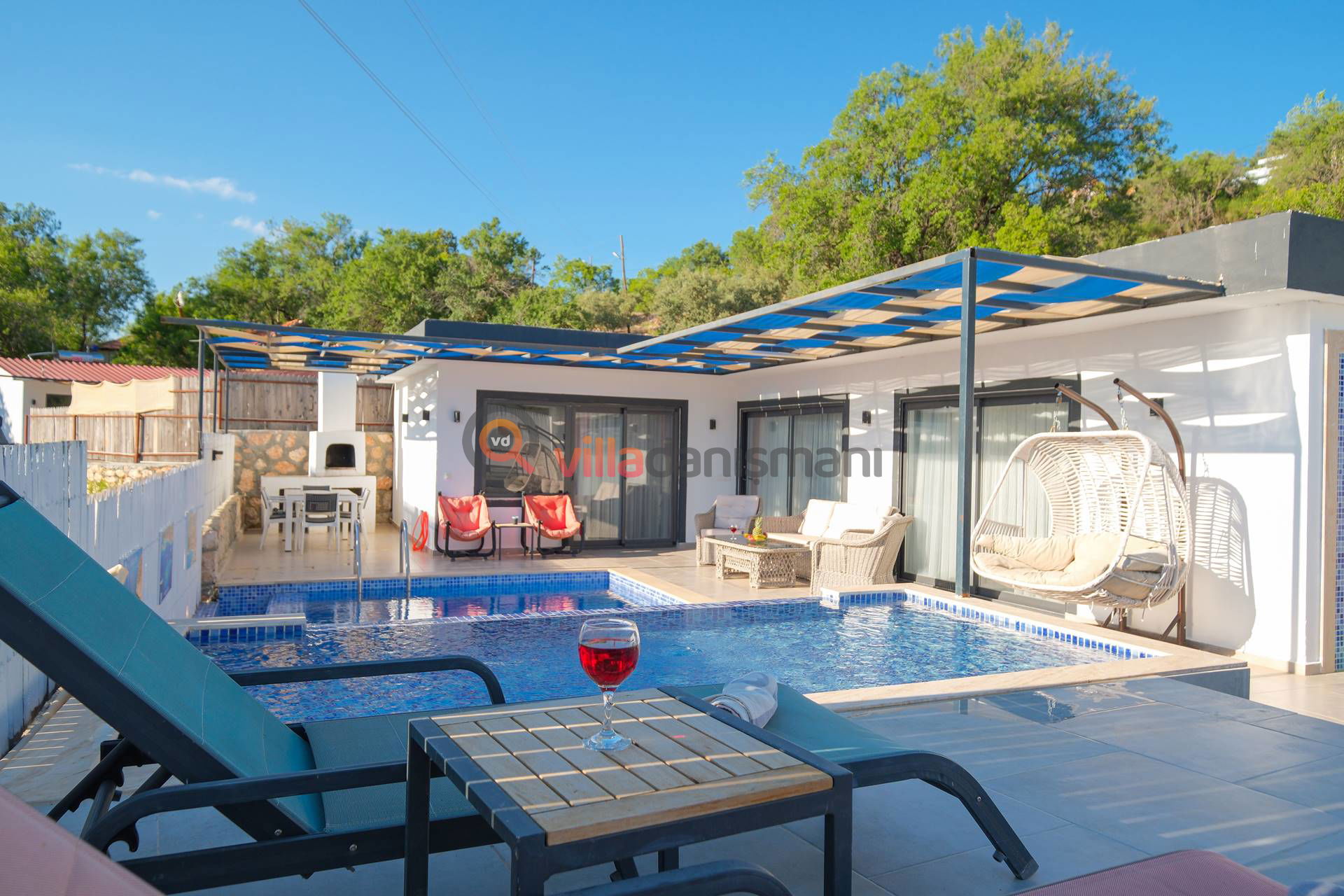 Antalya' nın eşsiz tatil beldelerinden birisi olan Kalkan'ın Sarıbelen Mevkiinde bulanan villamız, doğa ile iç içe, sessizliğin ve huzurun hakim olduğu bir tatil imkanı sunmaktadır. Villamız şık konsepte sahip olup,  dışarıdan gözükmeyen havuz terasına sahip,  barbekü alanı ile 4 kişilik aile ve arkadaş gruplarına konaklama imkanı vermektedir.