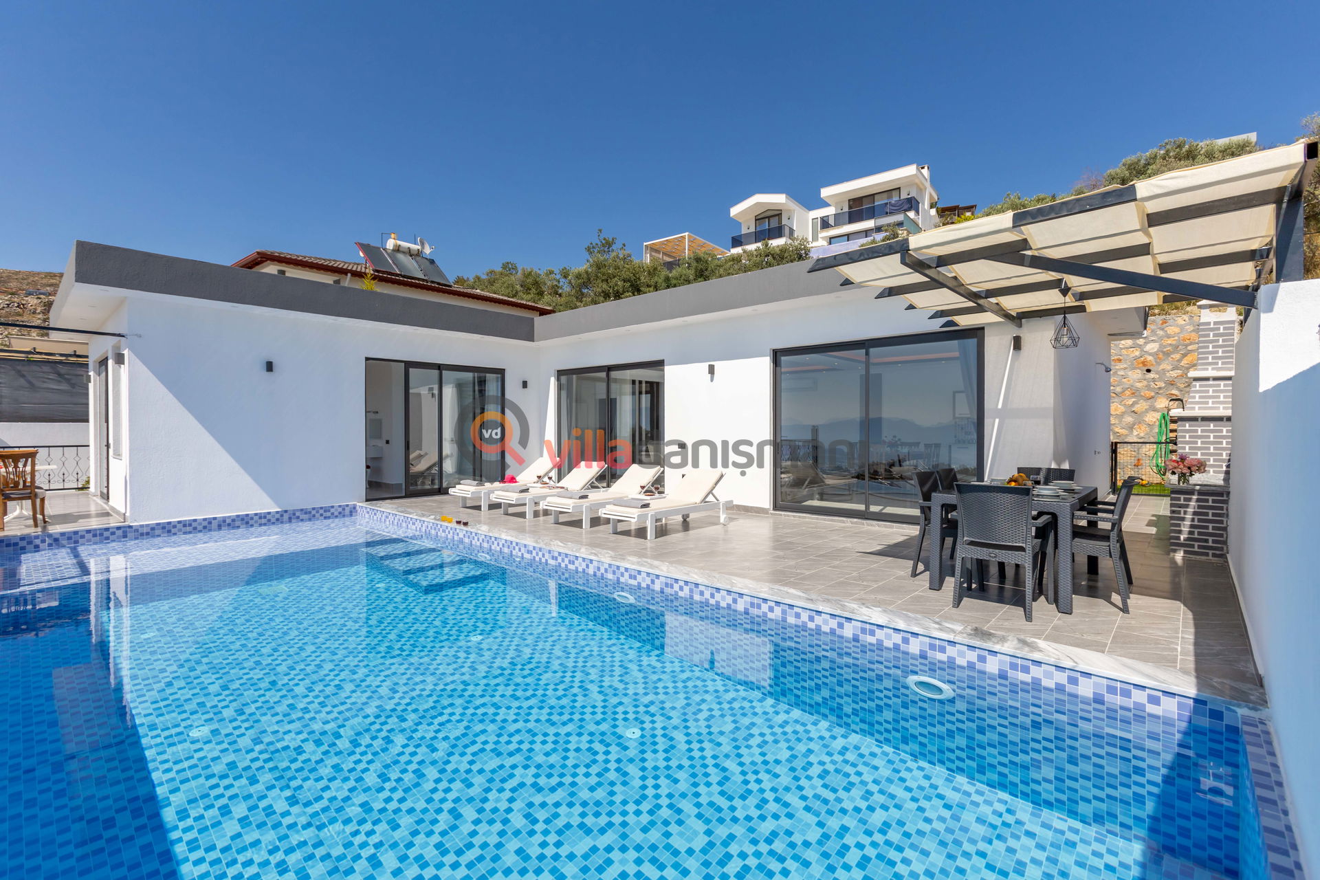 Antalya'nın eşsiz tatil beldelerinden birisi olan Kalkan'ın İslamlar mevkiinde bulunan 4 kişilik konaklama kapasitesine sahip doğa manzaralı villalarımızdan bir tanesidir. Villamız muhafazakar ailelerimiz için özel tasarlanmıştır. Havuzu dışarıdan gözükmediği için gönül rahatlığı ile havuzun tadını çıkartabilirsiniz.