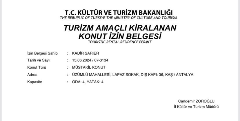 NOT: Tüm sezonda minimum kiralama süresi 4 gecedir. 7 geceden daha az konaklamalar için ekstra 2.000TL temizlik ücreti talep edilir.