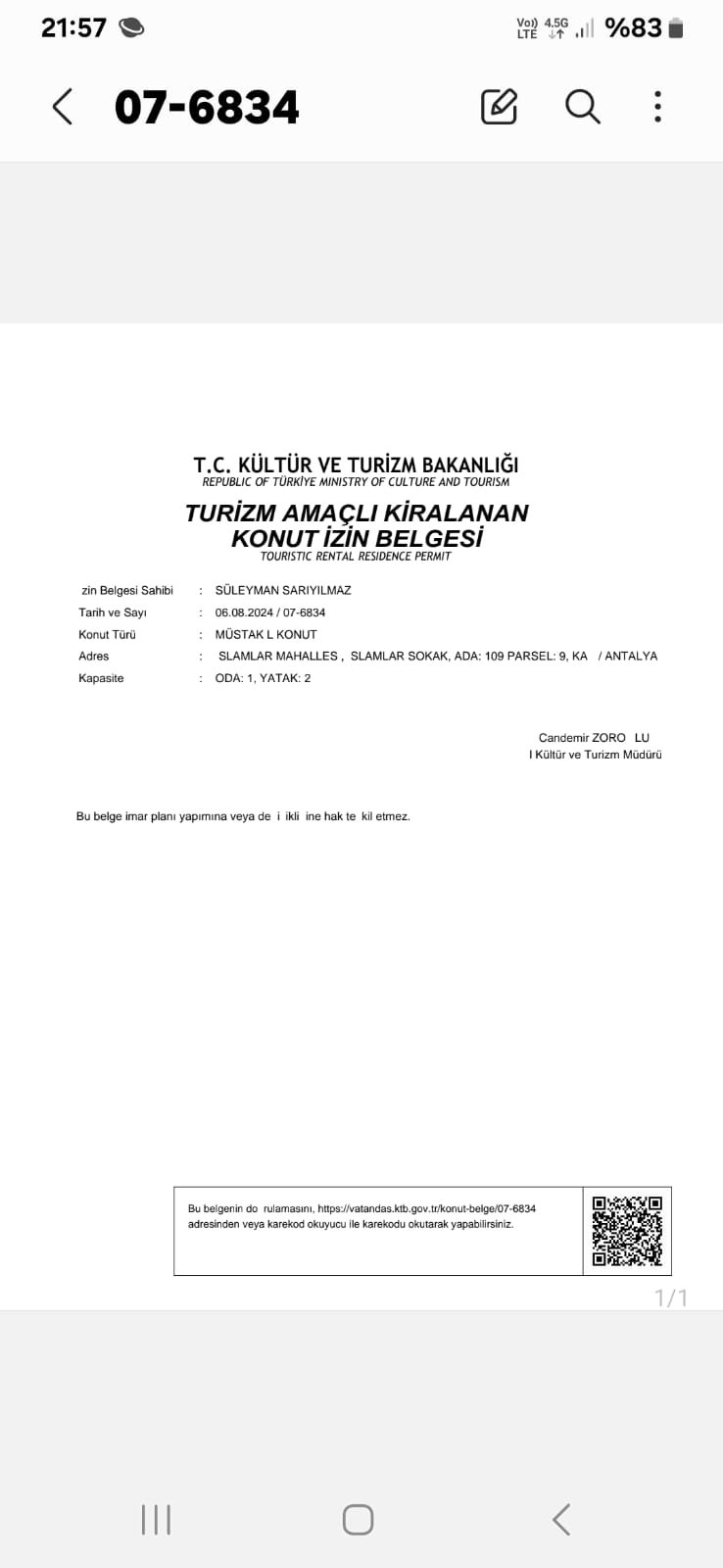 NOT: Tüm sezonda minimum kiralama süresi 4 gecedir. 6 geceden daha az konaklamalar için ekstra 2.000 TL temizlik ücreti talep edilir.