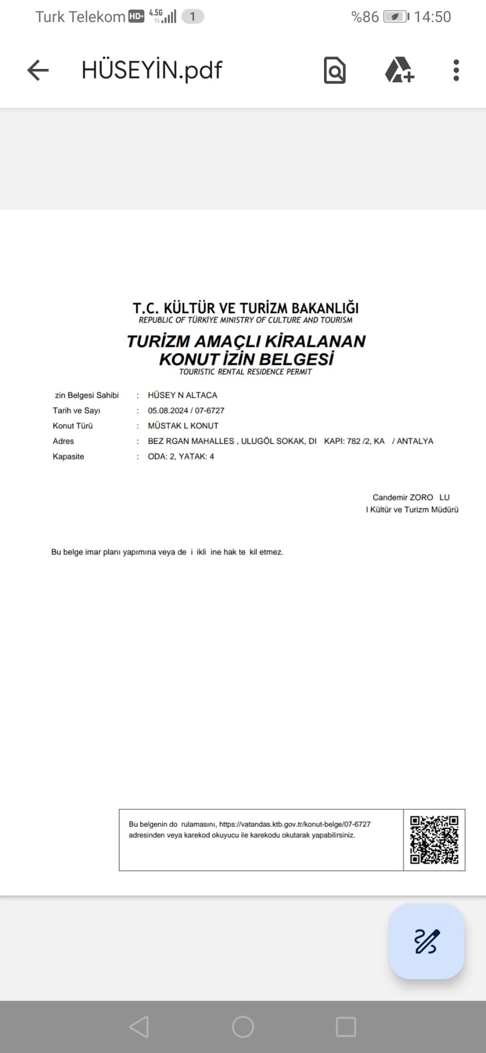 NOT: Tüm sezonda minimum kiralama süresi 3 gecedir. 6 geceden daha az konaklamalar için ekstra 5,000 TL temizlik ücreti talep edilir.