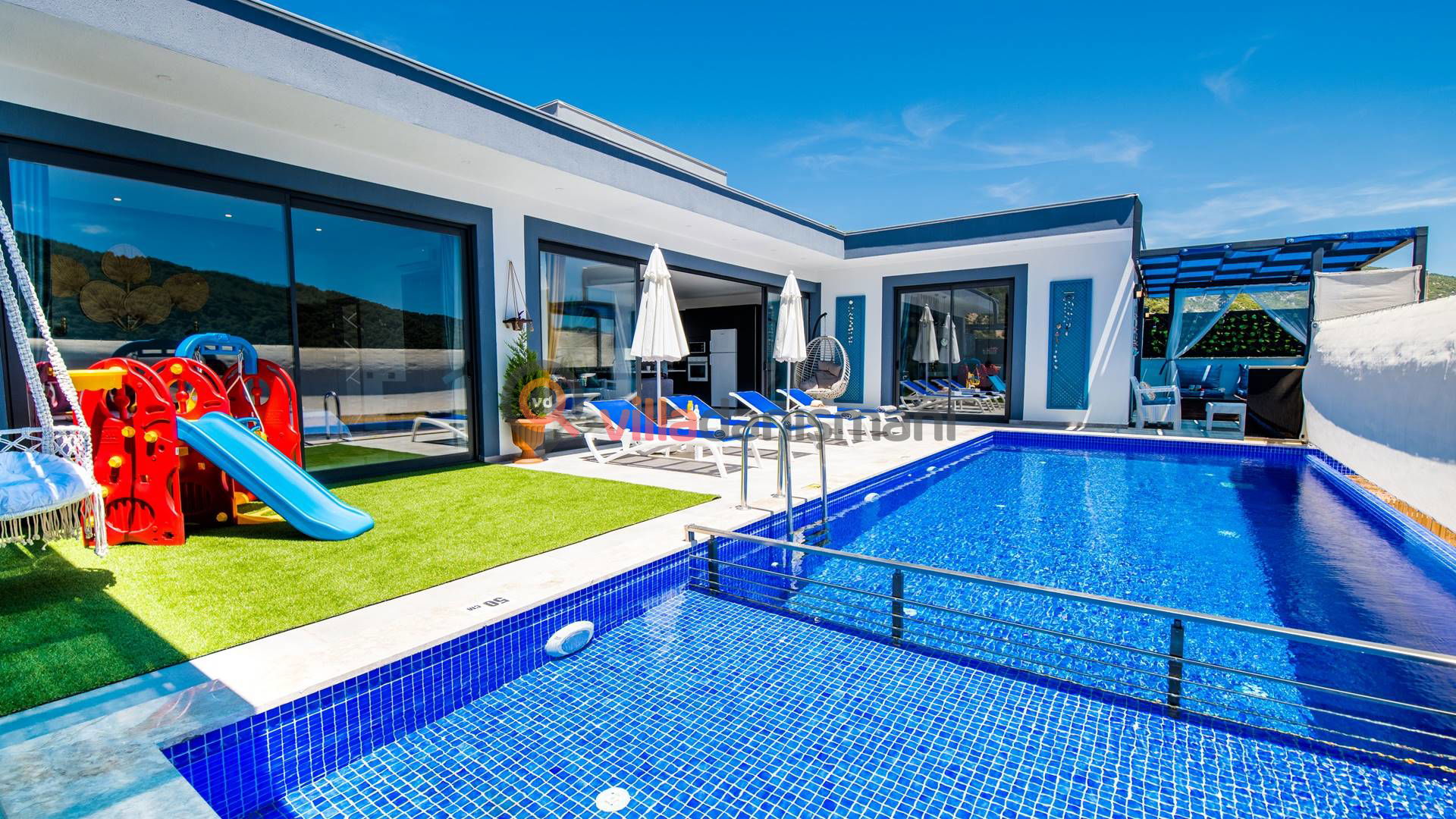 Villa Lavinya, Aileniz ve arkadaşlarınız ile keyifli bir tatil geçireceğiniz villamızdır. Villamızın havuz etrafı korunaklı olup dışarıdan görünmediği için muhafazakar aile ve arkadaş gruplarınızla gönül rahatlığıyla tatilinizi yapabilirsiniz.