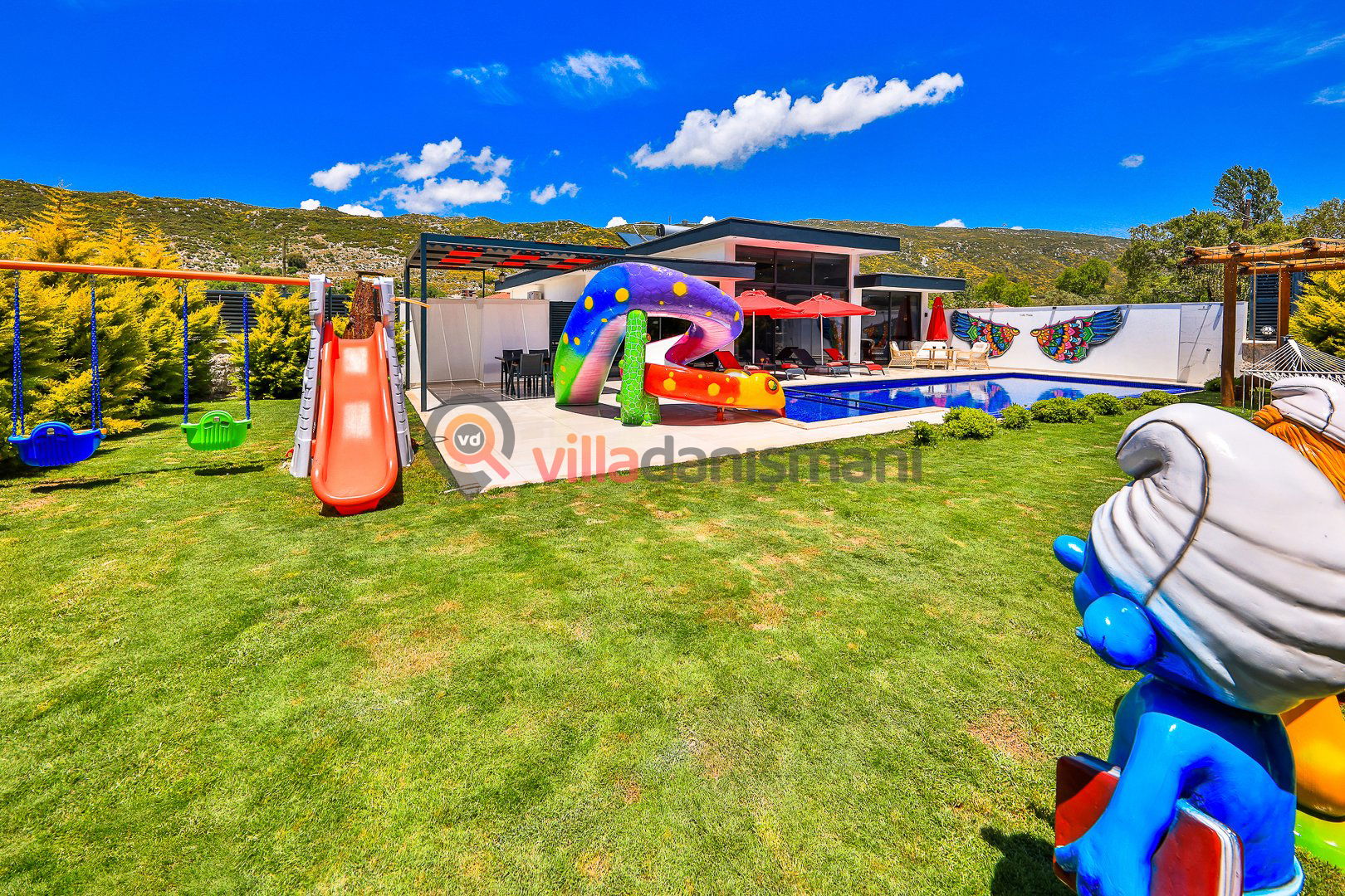 Villamızın, 4 * 10 metre ebatlarında 1,55 metre derinliğinde havuzu ve 4*2,5 metre ebatlarında 0,50 metre derinliğinde çocuk havuzu bulunmaktadır.