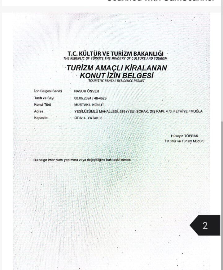 NOT: Tüm sezonda minimum kiralama süresi 5 gecedir. 6 geceden daha az konaklamalar için ekstra 3500 TL temizlik ücreti talep edilir.
