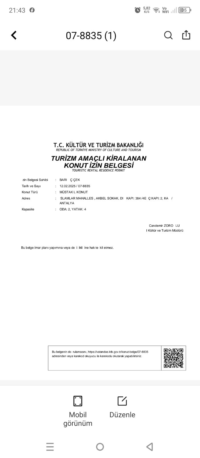 NOT: Minimum konaklama süresi 3 gecedir. Haziran-Temmuz-Ağustos- Eylül aylarında 7 gece altında konaklamalar için ekstra 2500 TL temizlik ücreti talep edilir. Mayıs ve Ekim aylarında ise 5 gece altındaki konaklamalarda 2500 TL temizlik ücreti talep edilir.