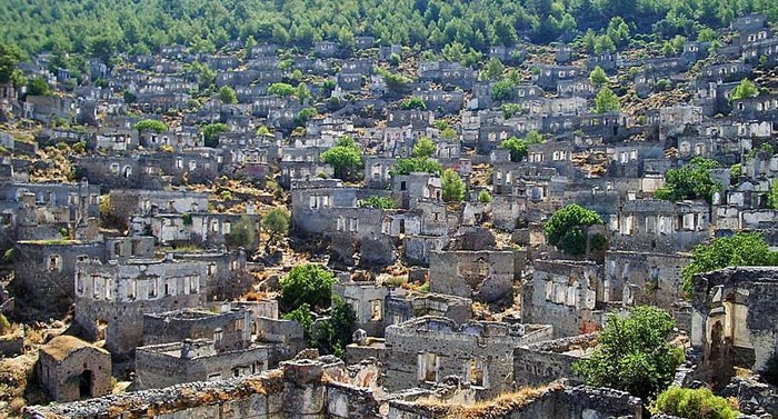 18. yy ‘da Rumlar tarafından Likya kalıntılarının üzerine kurulmuştur. Eski adı Levissi olan yerleşim yeri 1957 Fethiye depreminde harabeye dönmüştür. Osmanlı kayıtlarında bu bölgede Oğuzların Kayı boyuna mensup Türkmenlerinde yaşadığı bilinmektedir. Rumlar Yunanistan’a göç edince buraya Selanik ve civarından gelen muhacirler yerleşmiştir. Deprem sonrası hayalet köye dönüşen bu yerde 2 kilise, 14 şapel ve 3500 civarında ev vardır.
