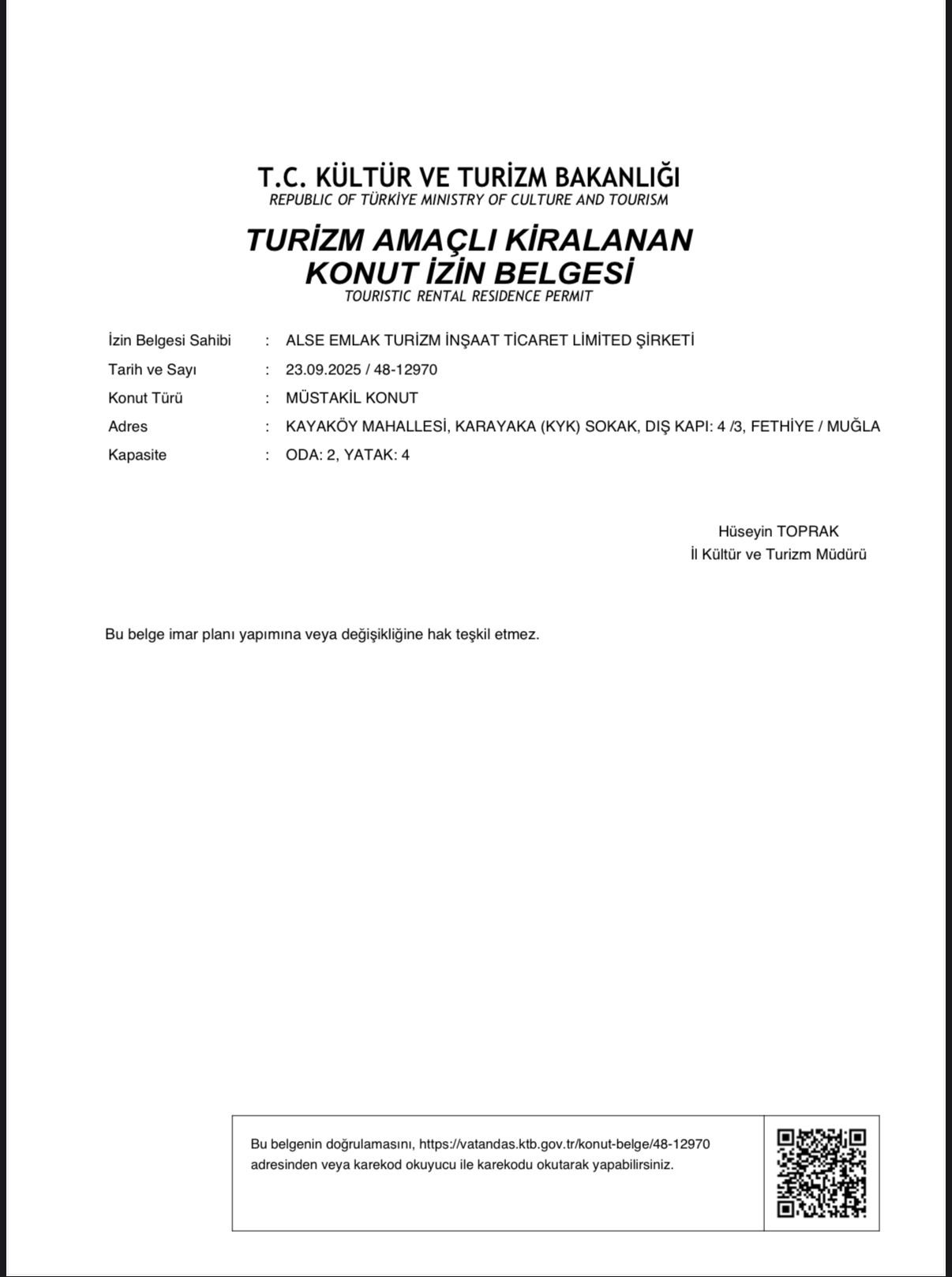 - A supplementary cleaning fee of 3,000 TL applies to stays shorter than 7 nights.