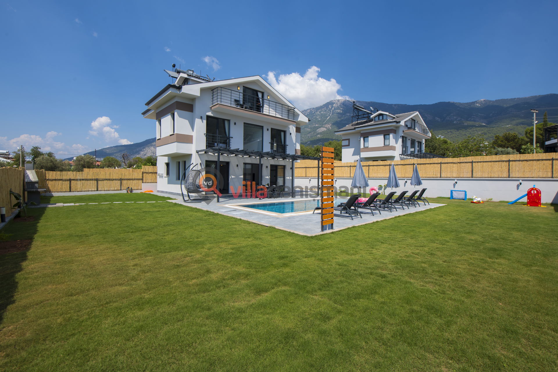 Villa Bahar offers an unforgettable holiday experience with its modern design and luxurious amenities. With 3 bedrooms and 4 bathrooms, the villa accommodates up to 6 guests, providing comfortable accommodation with en-suite bathrooms and air conditioning in each room. The private swimming pool and spacious garden are perfect for relaxing with family or friends. The room on the top floor features a jacuzzi and Smart TV. The villa is located just 700 meters from the Hisarönü entertainment center and only 3 km from the world-famous Ölüdeniz beach. Additionally, the villa is part of a complex with 3 similar villas side by side, making it an excellent choice for larger groups.