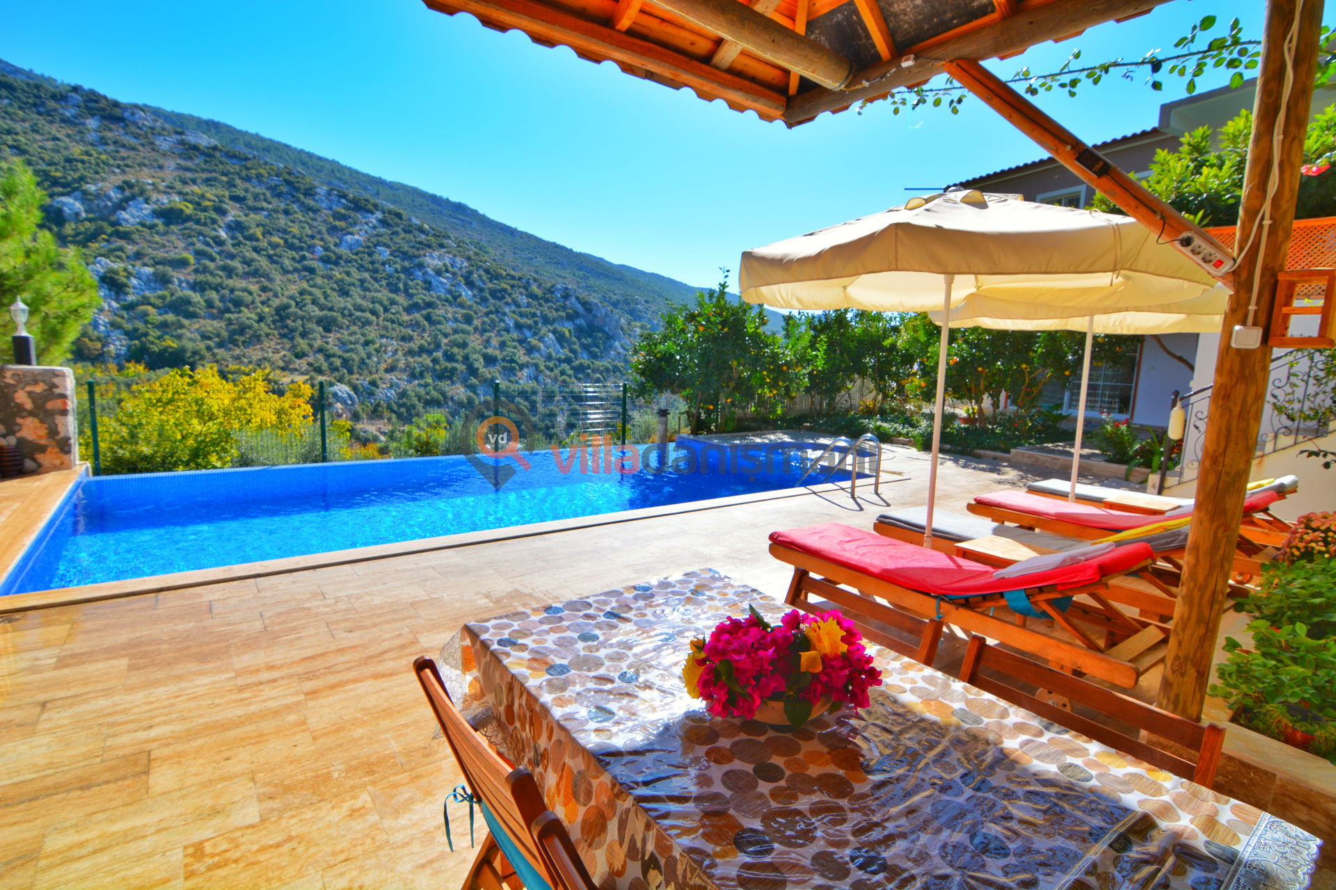Antalya'nın eşsiz tatil beldelerinden birisi olan Kalkan'ın İslamlar mevkiinde bulunan 4 kişi kapasiteli villalarımızdan bir tanesidir. Bahçesindeki havuzu jakuzili olup, huzuru ve mutluluğu yaşayacağınız doğa ile iç içe aileniz ve arkadaşlarınız ile keyifli bir tatil geçireceğiniz havuzu dışarıdan görünmeyen dolayısıyla muhafazakar tatil yapmak isteyenlerin gönül rahatlığı ile tercih edebileceği villalarımızdandır.