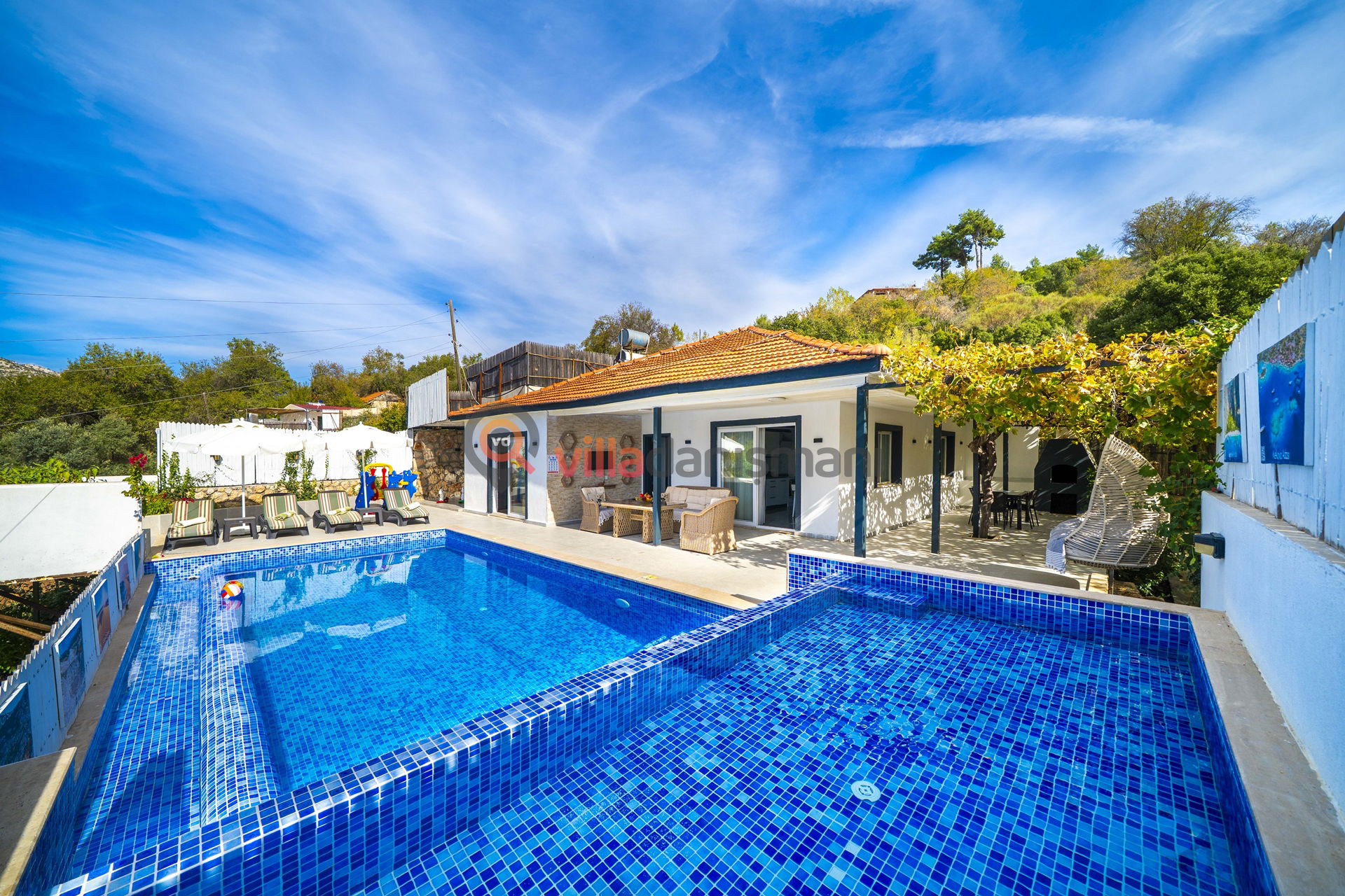 Antalya' nın eşsiz tatil beldelerinden birisi olan Kalkan'ın Sarıbelen Mevkiinde bulanan villamız, doğa ile iç içe, sessizliğin ve huzurun hakim olduğu bir tatil imkanı sunmaktadır. Villamız, dışarıdan gözükmeyen havuz terasına sahip olup, çocuk oyun alanları ve barbekü alanı ile 4 kişilik aile ve arkadaş gruplarına konaklama imkanı vermektedir.