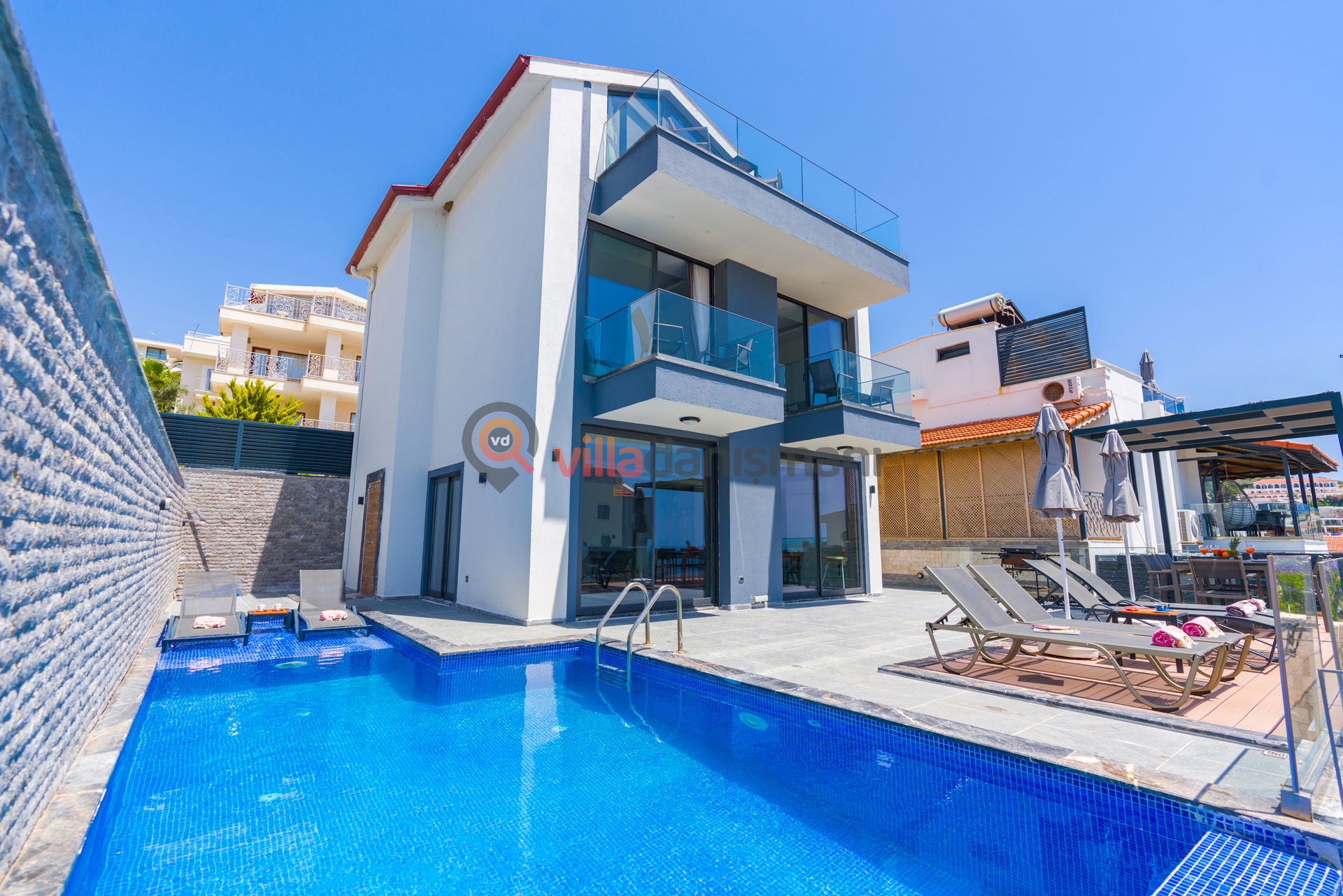 Villamızda elektrik, su ve tüp gaz kullanımlarınız haftalık ücrete dahildir. Villamız sizlere tertemiz ve her odasına havlu nevresim vb eşyalar bırakılmış şekilde teslim edilmektedir. Günlük olarak villa görevlisi havuz ve bahçe bakımını yapmaktadır.