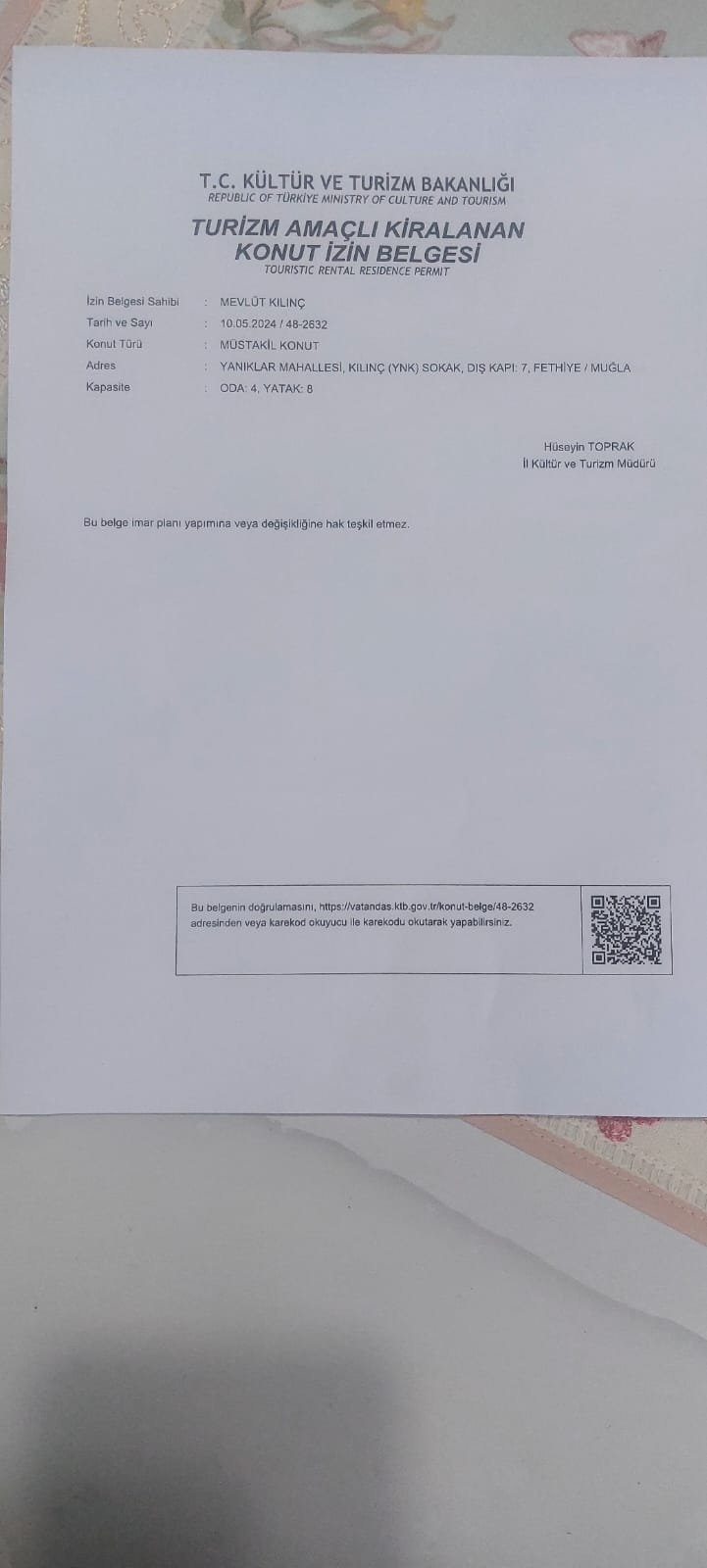 NOT: Minimum kiralama 3 gecedir. 7 geceden daha az konaklamalar için ekstra 3.000 TL temizlik ücreti talep edilir.