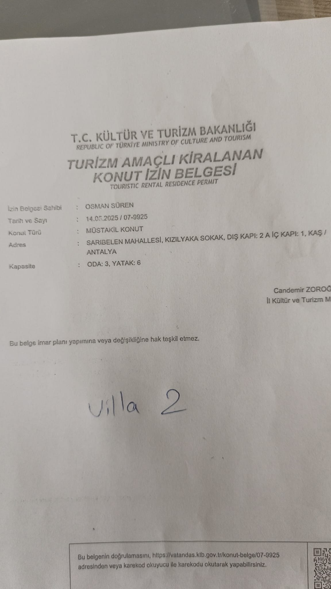 NOT: Tüm sezon boyunca minimum kiralama süresi 3 gecedir. 6 geceden daha az konaklamalar için ekstra 5,000 TL temizlik ücreti talep edilir.