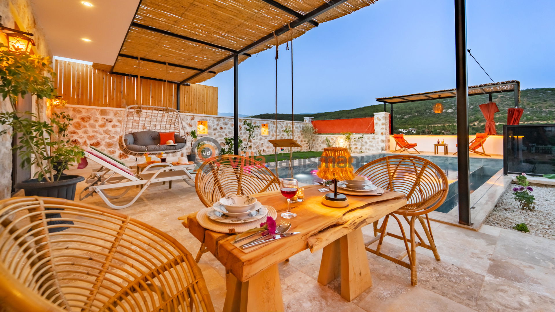Villamızın, 1 yatak odası vardır ve 2 kişi konaklama kapasitesindedir. Havuzun ve terasın etrafı korunaklı olması sayesinde gözlerden uzak tatil yapmak isteyen çiftlerin ya da muhafazakar ailelerin oldukça sık tercih ettiği bir villadır.