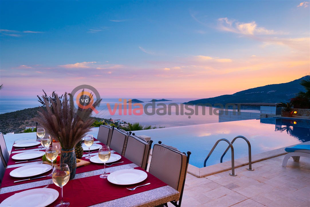 Antalya'nın eşsiz tatil beldelerinden birisi olan Kalkan'ın Kalamar mevkiinde bulunan 6 yatak odalı, muhteşem deniz manzarası, ısıtmalı havuza sahip bir villamızdır. Toplamda 12 kişilik kapasiteye sahip olan villamız kalabalık aileleri ağırlamak için bütün imkanları hizmetinize sunmuştur.